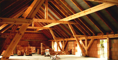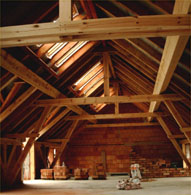 Die neue Dachkonstruktion wurde als Pfettendach mit "liegendem" Stuhl errichtet. Um mehr Raum