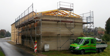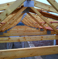 Nagelplattenbinder II Bei dieser Dacherneuerung wurden Satteldachbinder eingesetzt. Diese sind bei größeren Stütz-weiten und geringer Dachneigung besonders wirtschaftlich.