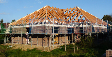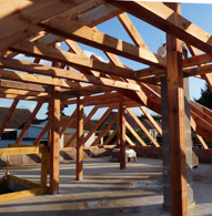 Walmdach in Bad Belzig Dieser Dachstuhl mit Walmdach steht auf einem Winkelbau. Er hat 5 Gratsparren und einen Kehlsparren. Hier wird der Dach-raum noch zu Wohnzwecken ausgebaut.
