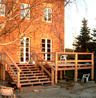 und eine Eingangstreppe aus Lärchen- holz erstellt.